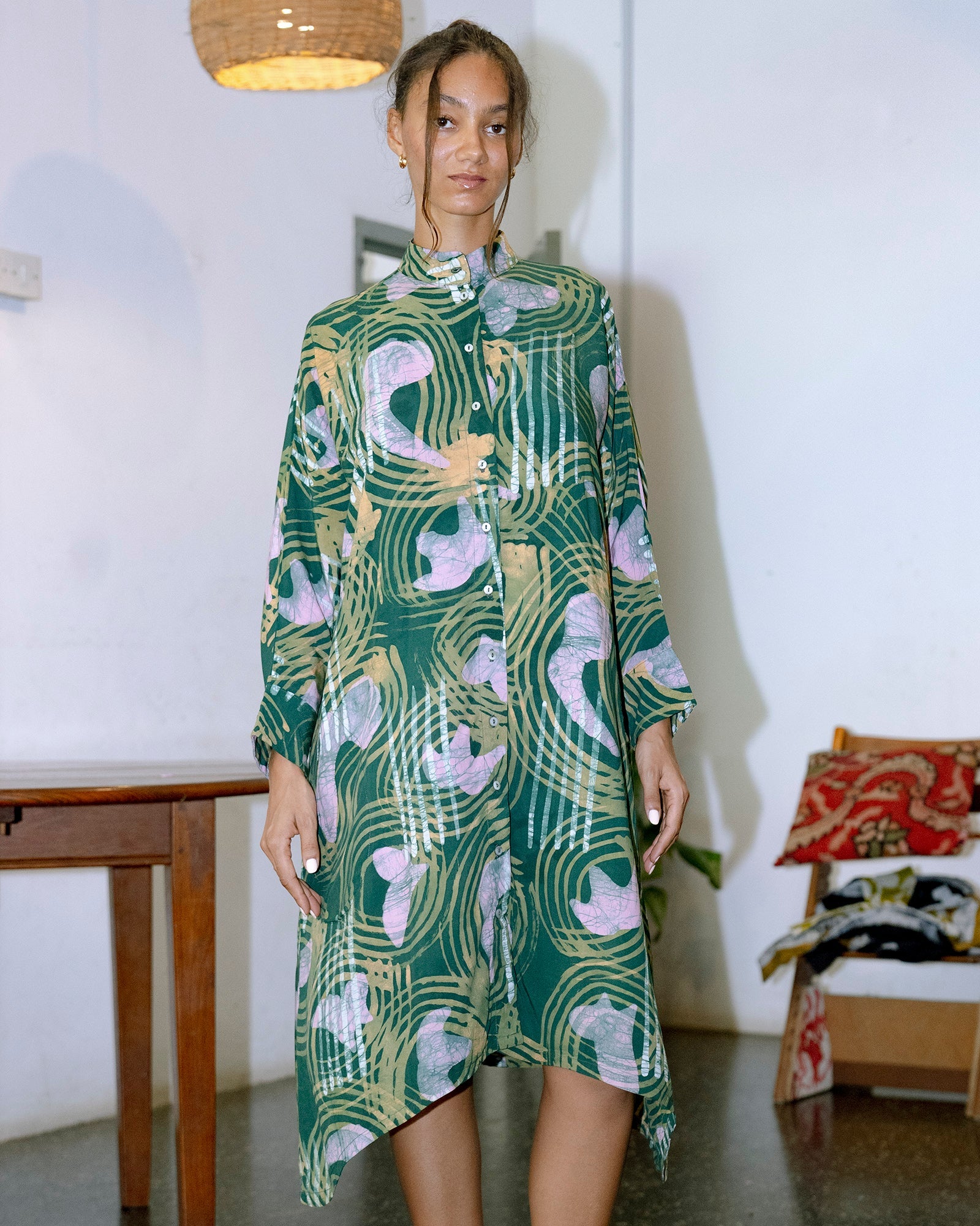 Beyond batik, Osei‑Duro collaborates with skilled makers across a range of traditional crafts including hand weaving, tie‑dye, block printing, and botanical dyeing. These techniques ensure each garment carries the touch of an artisan, something that machine production simply cannot replicate.
