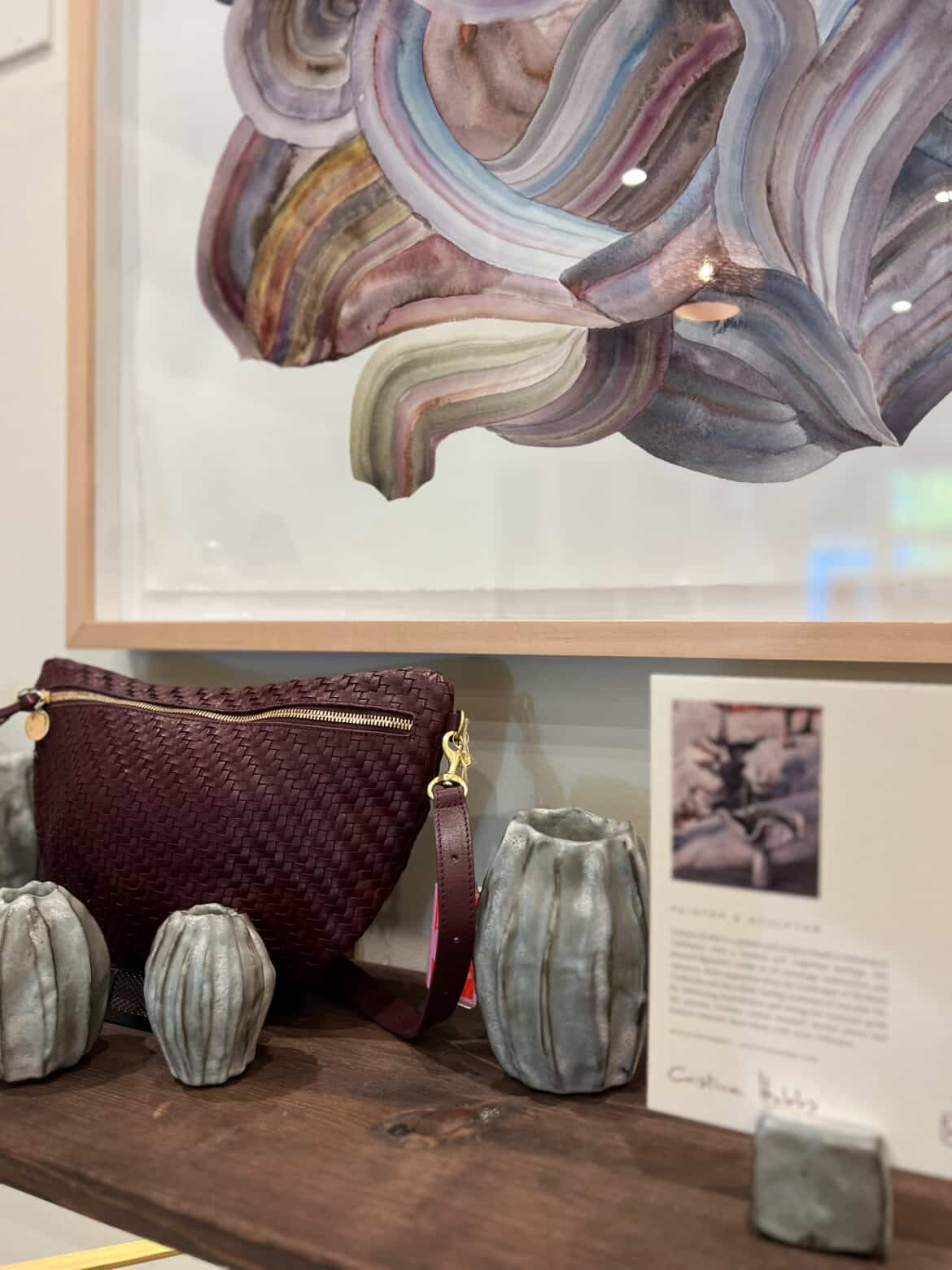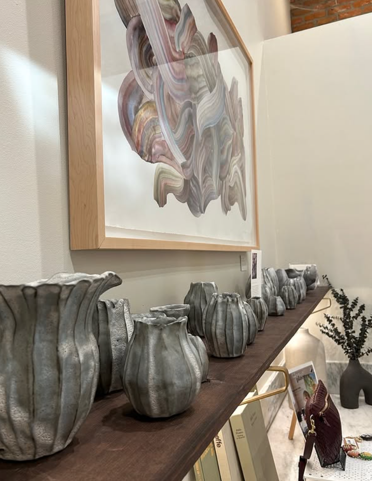 Cristina’s work fits right into that rhythm. Her ceramics, soft in tone, sculptural in shape, bring a calm, organic energy to any space. Her paintings, with their gentle abstractions, feel like a thoughtful pause on a wall or a moment of quiet reflection before you rush out the door.