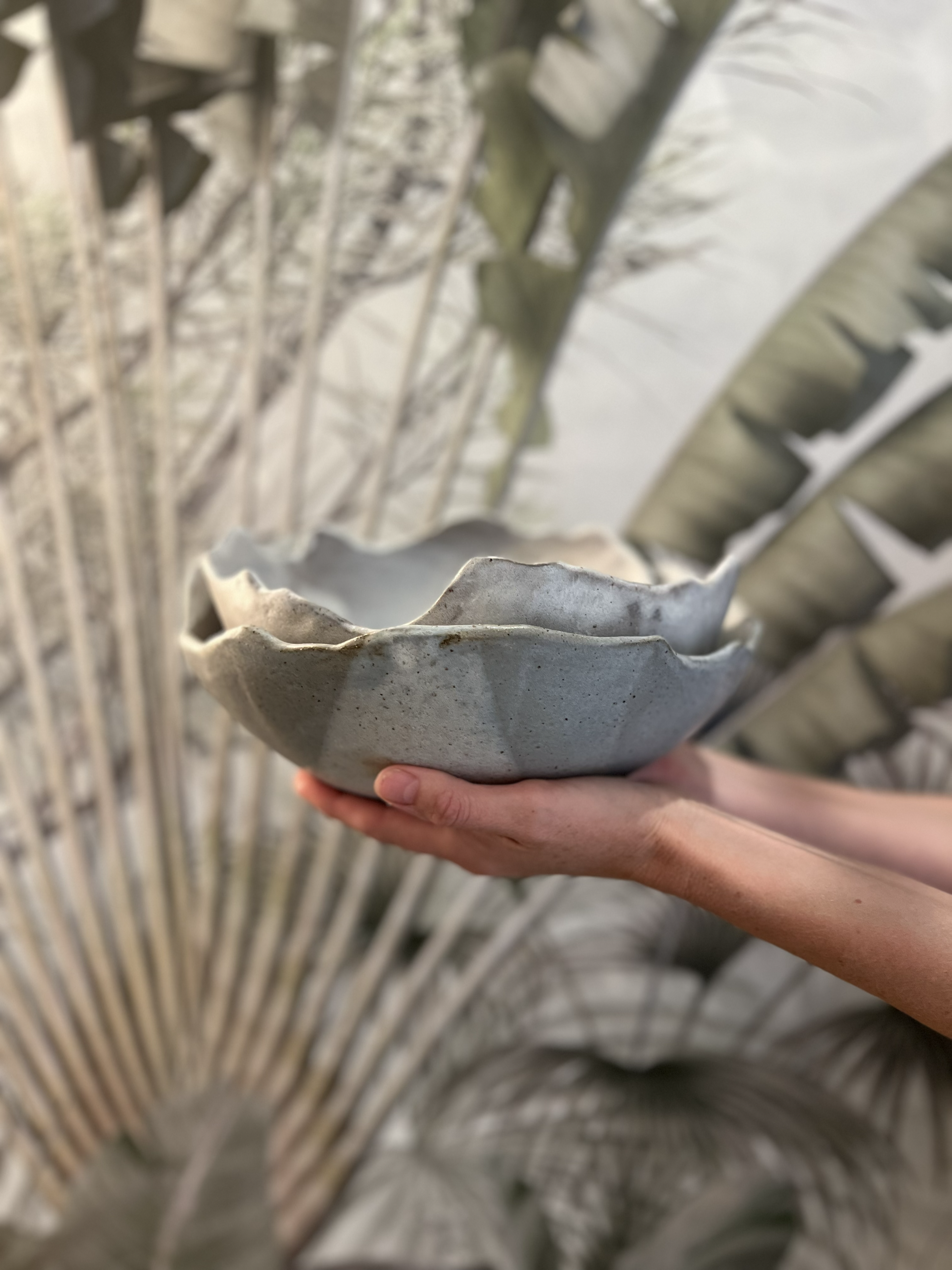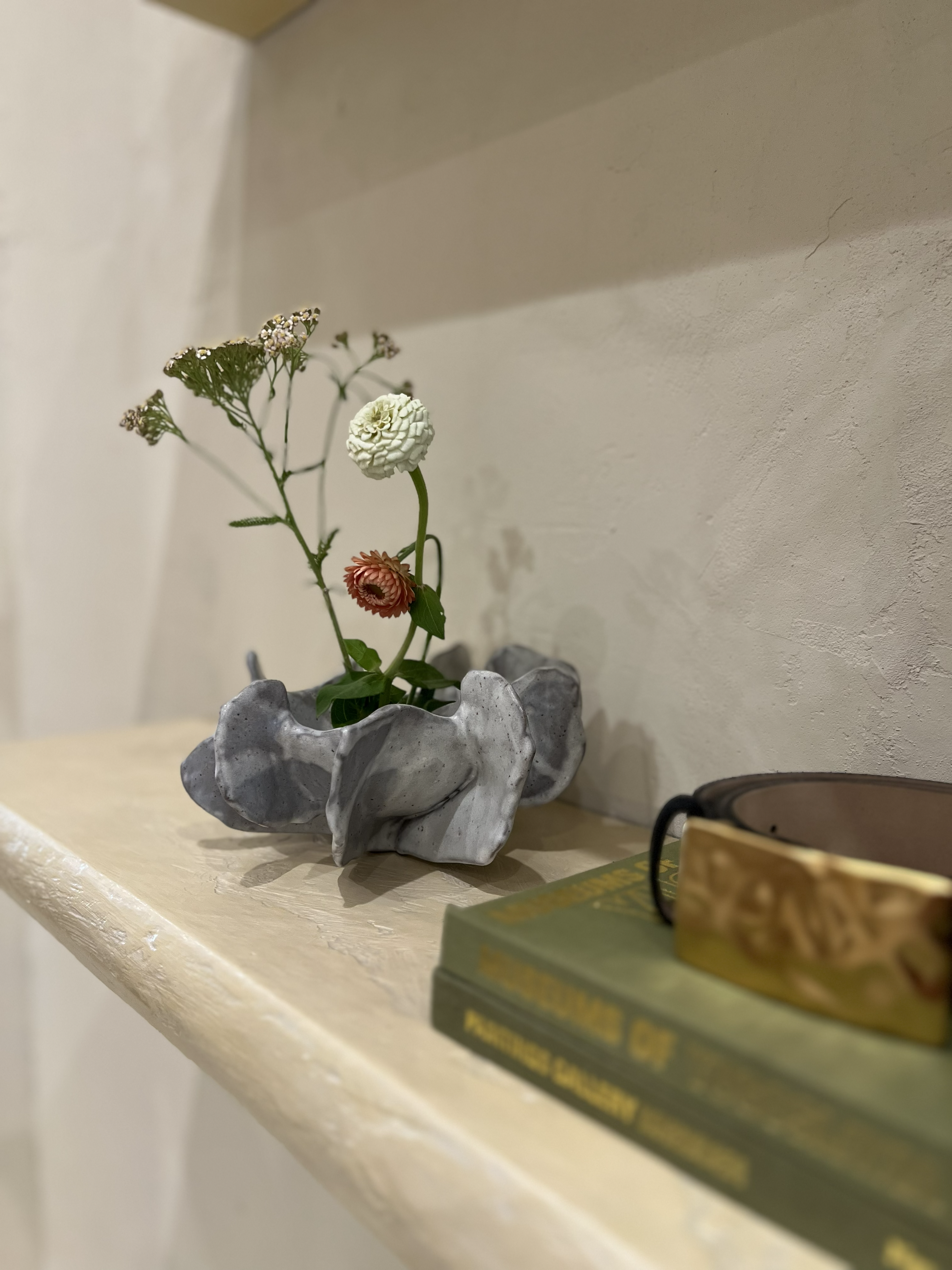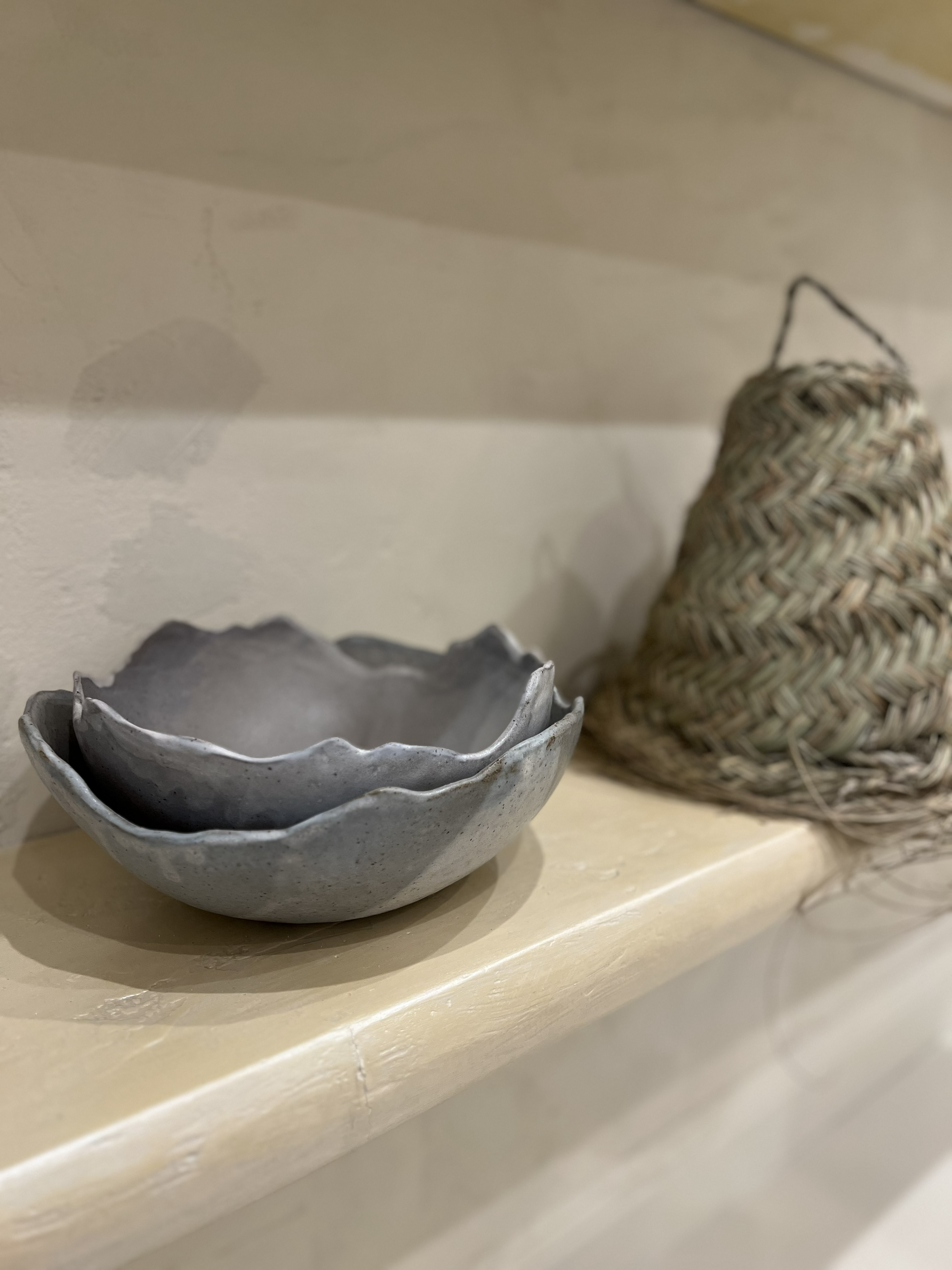 Her approach to ceramics emerged more recently, with clay, she creates sculptural forms that feel as natural as the landscapes she loves. Soft curves like petals, rhythmic textures like shells, and gentle earthy palettes that invite a moment of slow reflection.